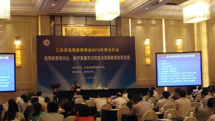 江苏省高等教育学会2013年学术年会大会特邀报告,基于信息及其相互作用机制的经济转型与高等教育改革——势科学暨信息动力学视角,2013.8.21.